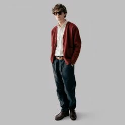 100% cotton. Moleskin fabric. Zip fly with button fastening. Drawcord waist. Two slash pockets. Two zippered welt pockets. Two back patch pockets with button fastening. Straight leg. Made in USA. Roomy fit.