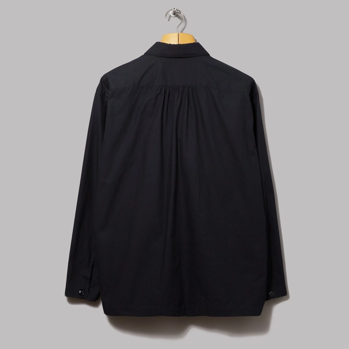 100% cotton. Ripstop fabric. Full button fastening. Chest pocket. Buttoned cuffs. Two patch pockets. Short, boxy fit. Made in Japan.