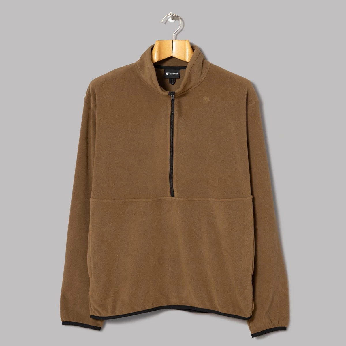 100% polyester. Fleece fabric. Half zip fastening. Stand collar. Two zippered slash pockets. Ribbed cuffs and hem. Regular fit. Goldwin’s Micro Fleece Half Zip is exactly what it says on the tin – a half-zipped sweatshirt-style garment made from that low-profile micro fleece stuff that sits on the more restrained end of the fleecey spectrum. That ‘Tatooine Sandstorm’ hue ain’t half bad on the peepers either.