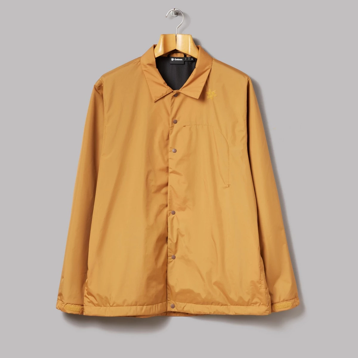 100% nylon. Waterproof/windproof Pertex Shield ripstop fabric. Full press stud fastening. Chest pocket with press stud closure. Velcro cuffs. Two press stud pockets. Straight hem. Packs into right slash pocket. Regular fit. This magnanimous beast is the Pertex Shield Coach Jacket from Goldwin. There’s a tonne of nifty features, from the windproof/waterproof Pertex Shield fabric (which is backed up by some mesh stuff for extra wintertime kudos), to its packable nature, but it’s that cunning chest pocket arrangement that’s really got us standing at attention. It may look like it’s an interior stitch pocket, but that’s baby’s sewn into the damn placket. Pretty special indeed.Â