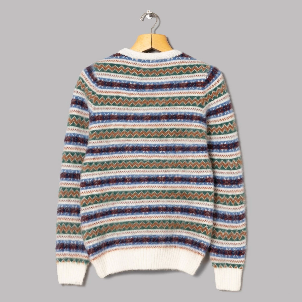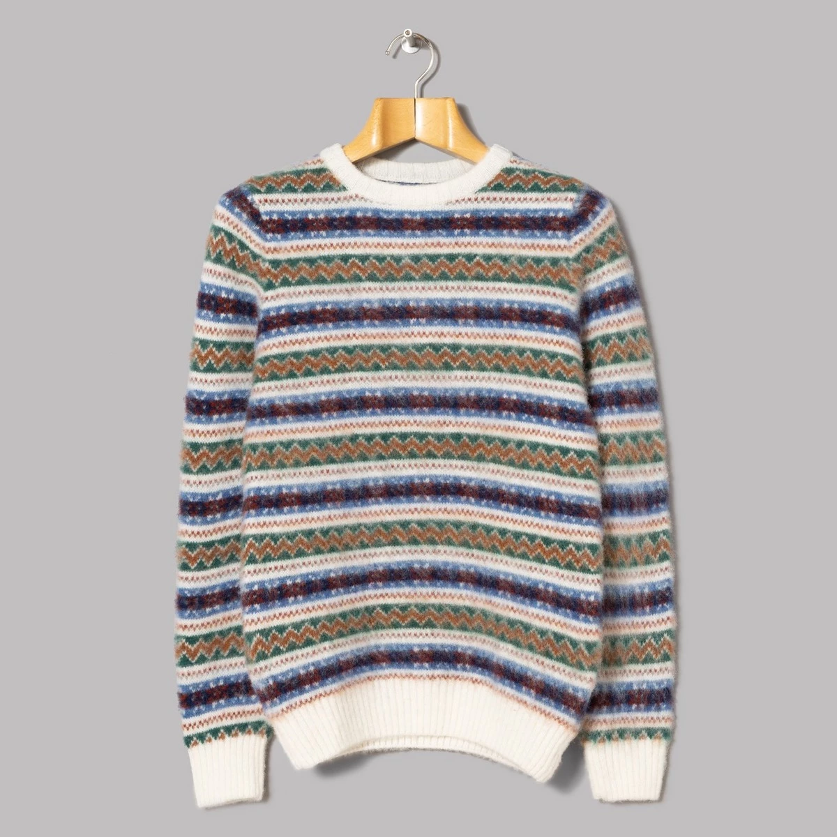 A Day in the Wool – a perfect shaggy pure new wool crewneck jumper from Howlin, a perfect way to spend a Sunday. This one has got a slightly Fair Isle-inspired look about it, meaning theres plenty of Paul McCartney supping hot Vimto flavour to soak up. Very tasty.