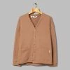 100% pure new wool. Brushed fabric. V neck button fastening. Ribbed cuffs and hem. Made in Scotland. Regular fit.