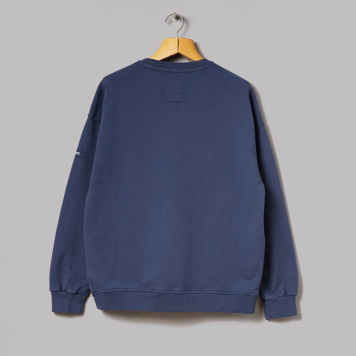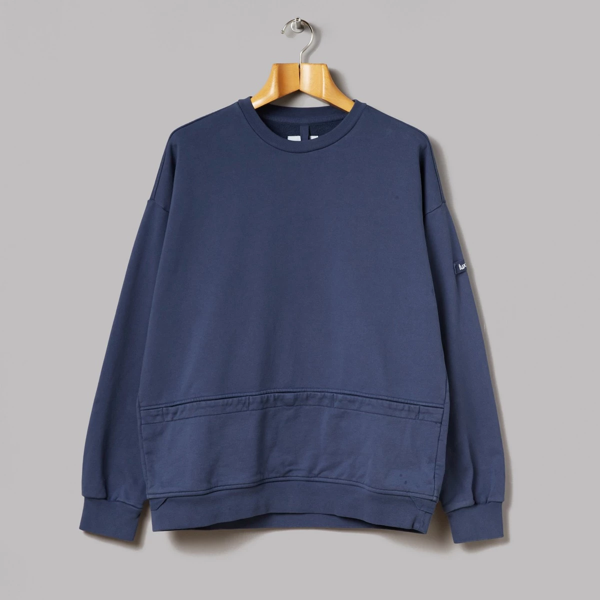 100% cotton. Loopback jersey fabric. Ribbed crew neck cuffs and hem. Woven brand tab on shoulder. Two front pockets. One pocket with press-stud closure. Two woven loops at hem. Made in Portugal. Regular fit. This is the Painter Shirt by Luxfort. Its moniker claims this to be a shirt, however, we’d firmly plonk this in the sweatshirt category with its loopback jersey fabric and its stout but incredibly stretch-friendly head, wrist and waist ports. The most thought-provoking thing going off here is that brush display unit near the hem, ideal for storing… errr…brushes in.Â