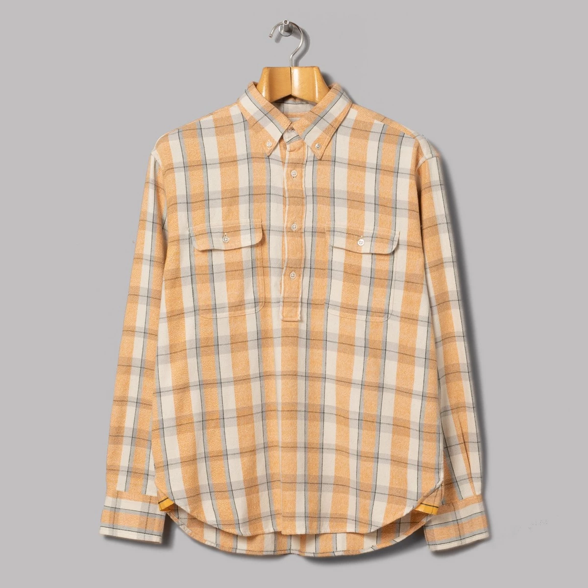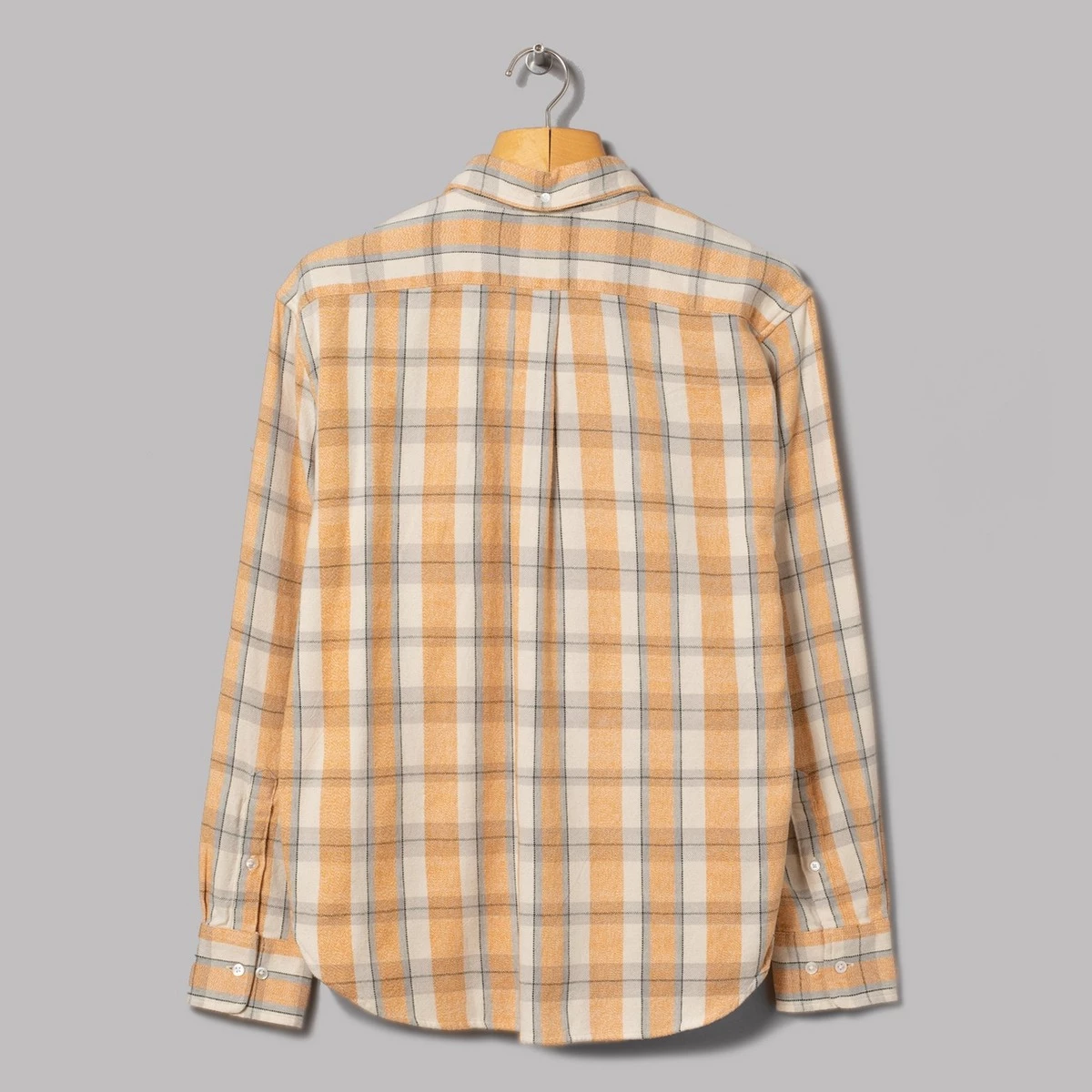 100% cotton. Brushed cotton fabric. Å“ buttoned fastening. Button down collar. Curved seam with air vents. Two chest pockets with flap button fastening. Buttoned cuffs. Regular fit.